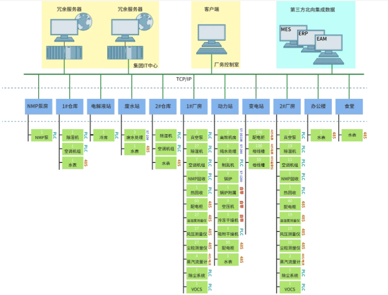 常見的子系統有暖通、工藝排風、工藝冷卻水、冷水機組、冷凍水分配和冷卻塔、鍋爐和加熱水、空壓機、給排水等。一般FMCS內的所有子系統采用與全廠FMCS一致的軟硬件和相同的協議標準。子系統與整個系統只使用一個系統數據庫。
